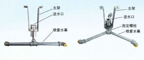 本裝置,通過(guò)水壓沖擊空氣產(chǎn)生反方向的推力使噴霧桿自動(dòng)旋轉(zhuǎn),形成方圓霧團(tuán),無(wú)需機(jī)械傳動(dòng)。
